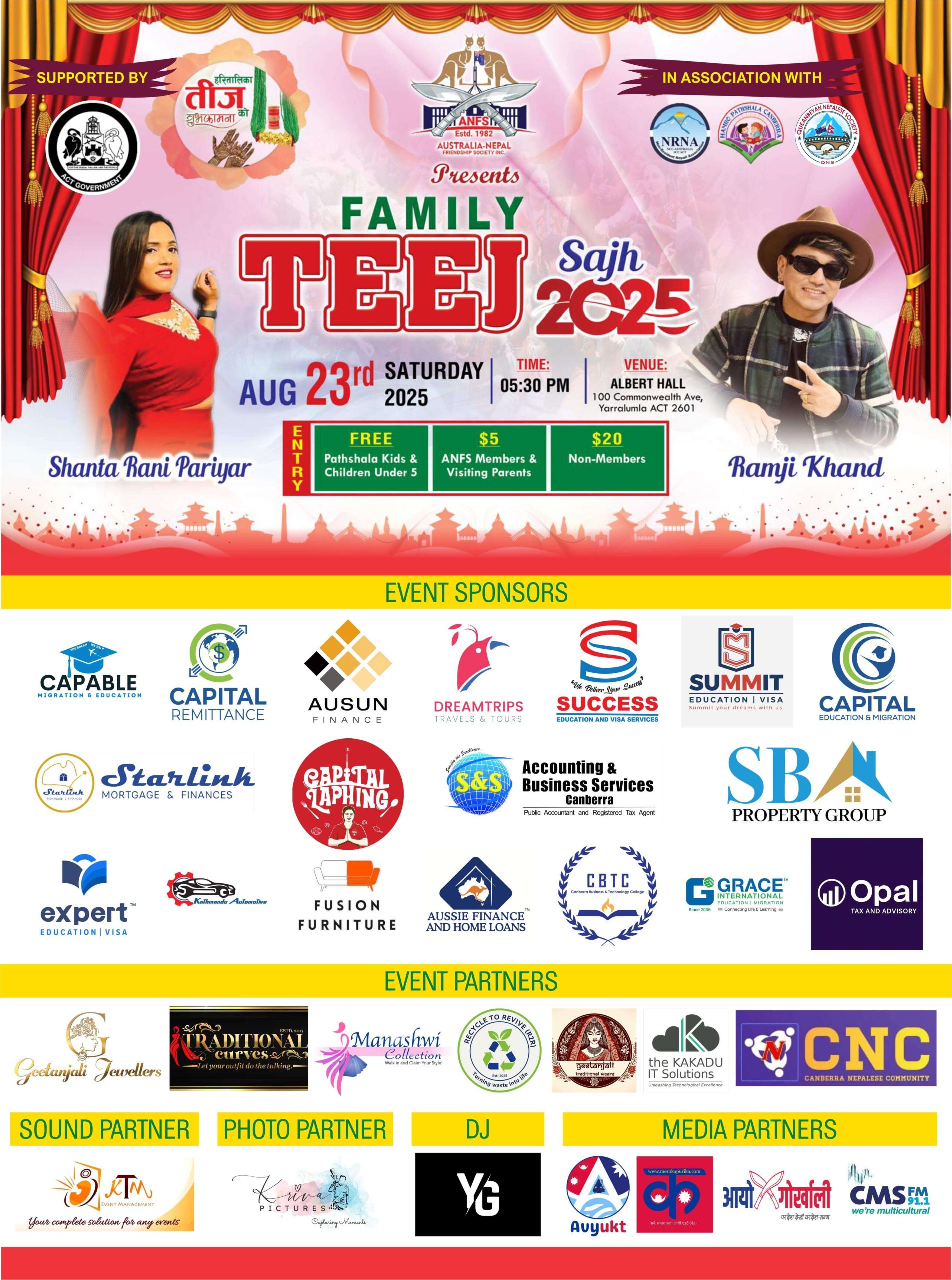 Albert Hall 100 Commonwealth Ave, YarralumlaDashain Night 2025 in Canberra! Get ready for a night of culture, music, dance, and delicious food as we come together to celebrate Dashain in grand style! Date: Saturday, September 27, 2025Venue: Albert Hall, CanberraTime: 6:00 PM – 10:00 PM Let’s make this Dashain celebration unforgettable TICKET: Members and Visiting Parents: $15/- Non Members: $25/- …